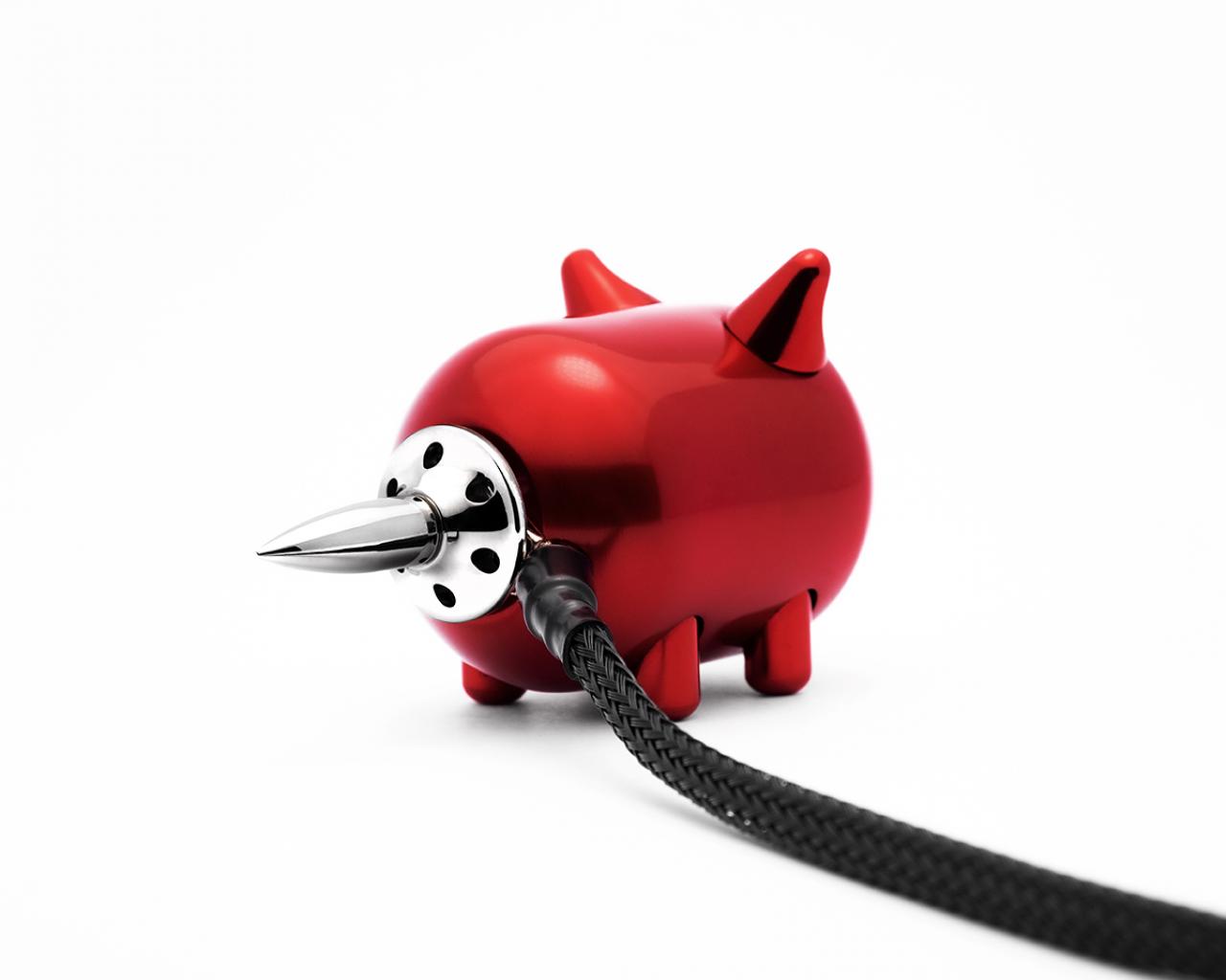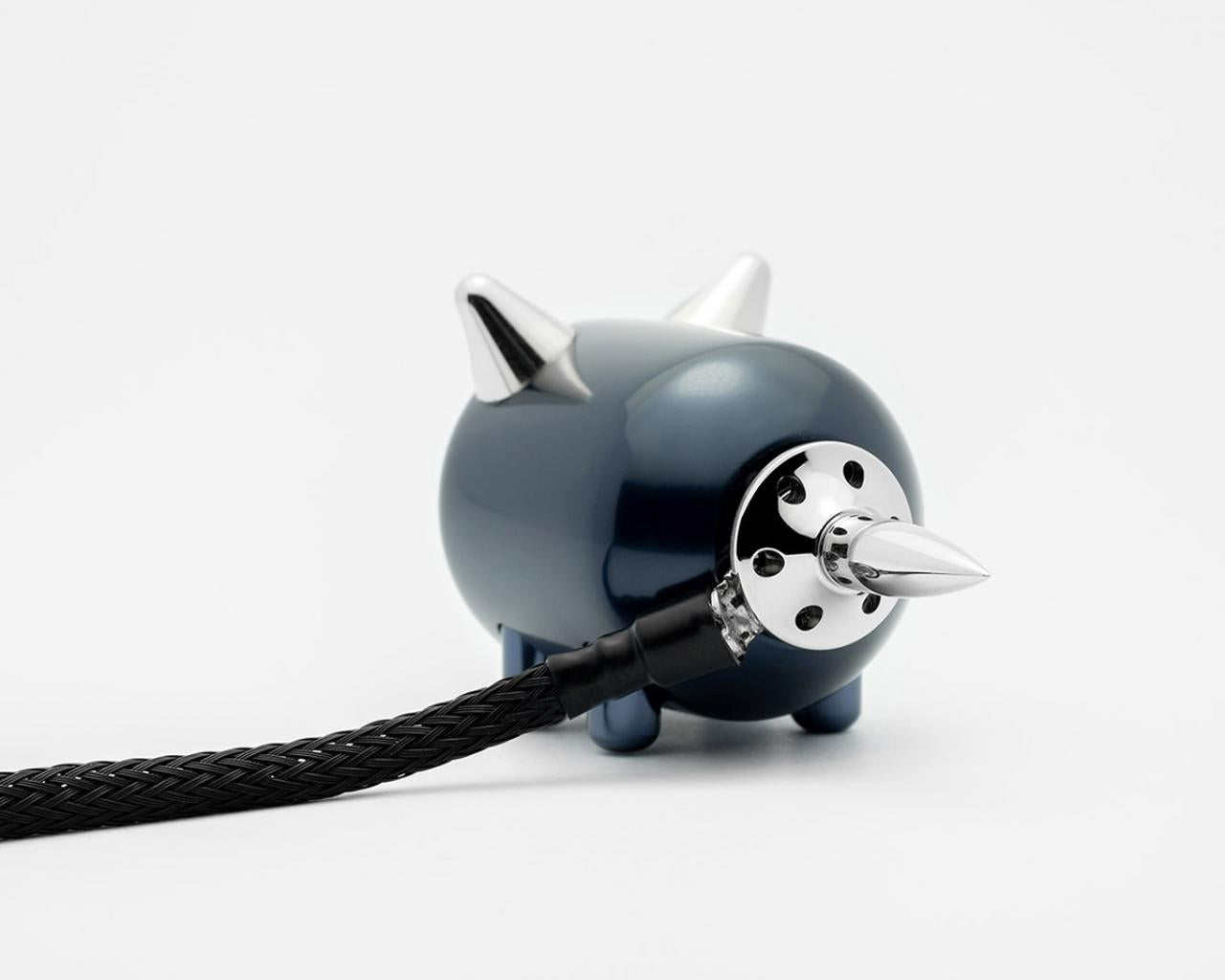 Opening the very nice Asian inspired packaging revealed a little creature about as big as my thumb. Very nicely finished with a chrome spike for it's tail (where a ground is to be attached) it certainly qualifies as "cute", but not so inspiring as an audio tweek. The mystery is enhanced by the fact that no literature is supplied or even referenced in the product description, so I had no idea what sort of change I was listening for. And THAT might be the magic - ANYTHING sounding different can thus be attributed to the Meow?!