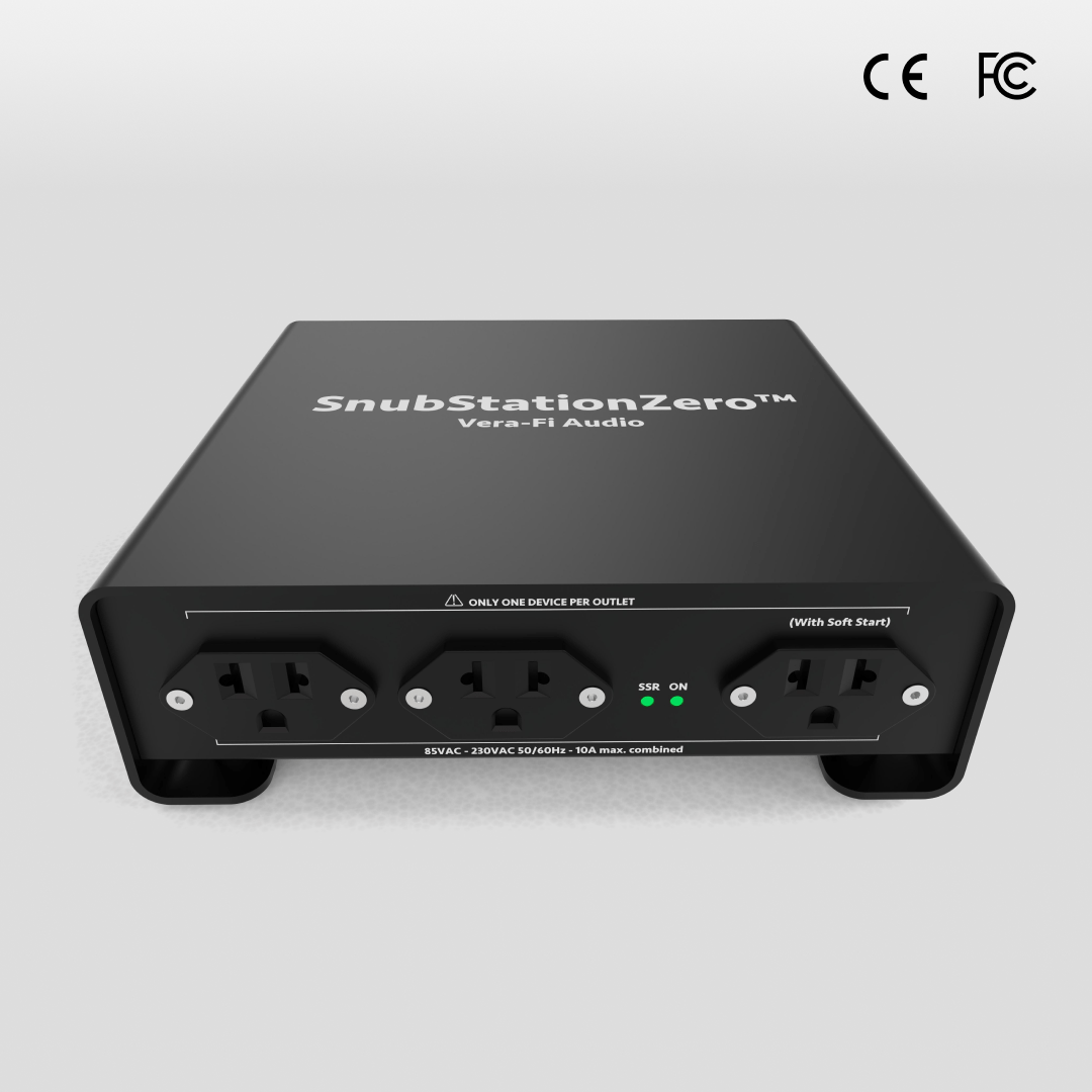 Snub Station Zero (SSZ) is an all-in-one mains power conditioner for audio/visual components that provides a state-of-the-art DC blocker, high-performance EMI filter, and an automatic soft start circuit that uses a solid state relay (SSR) to prevent large in-rush currents that can damage your equipment during the power-up phase.