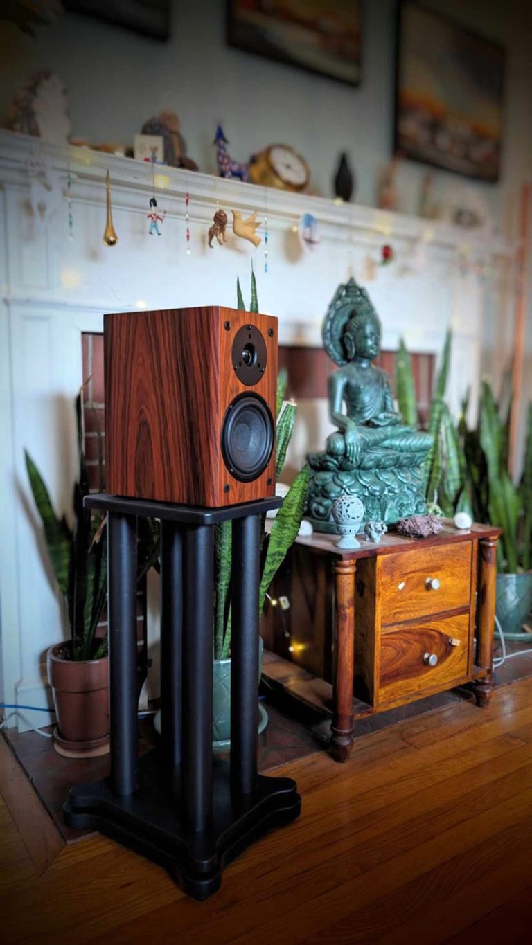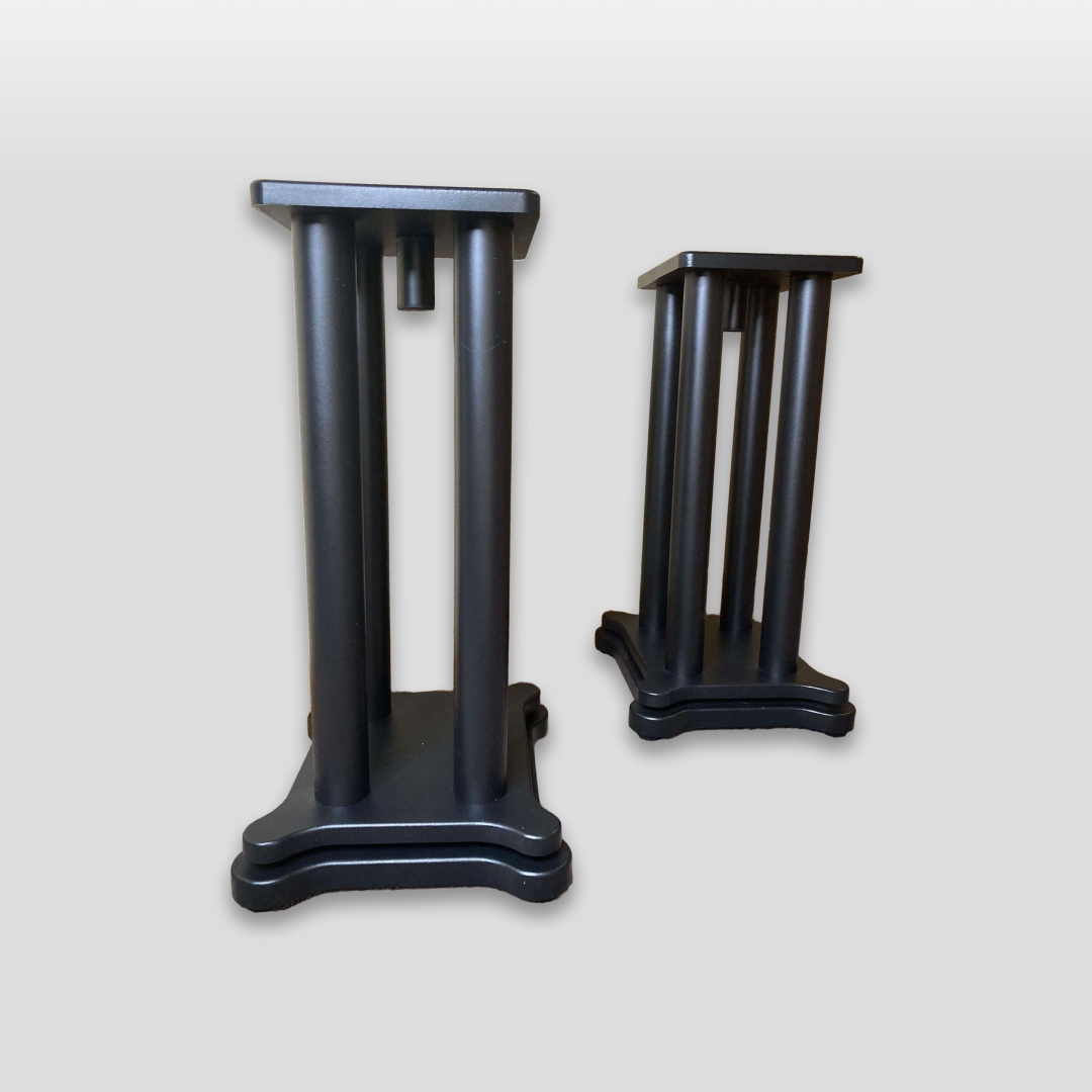 These stands will take the performance of Scout a step further by offering isolation and resonance control. Featuring rubber feet, these stands will work well on carpet or hard floors. Rubber isolation pucks are mounted at the base of each pillar and sandwiched between the double bases to ensure vibrations and resonance are not transferred to the floor. Each pillar is hollow allowing for utilization of sand or other dampening for increased performance and system tuning. An optional damping tube is mounted to the bottom of the speaker platform for increased resonance control and mass loading.